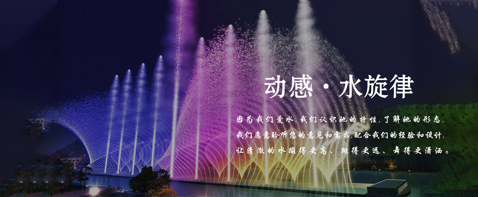 云南龍諾噴泉 — 專業(yè)打造融入地方特色的創(chuàng)意水景噴泉設(shè)計(jì)工程,主要從事園林景觀工程、大型水秀水景工程、昆明音樂噴泉工程、程控噴泉工程、冷霧造景、水幕電影、數(shù)碼水簾、環(huán)保工程、燈光亮化工程的設(shè)計(jì)與施工。始終堅(jiān)持質(zhì)量為先的工程理念,提供全方位的服務(wù)支撐,堅(jiān)持做充滿藝術(shù)觀感的高品質(zhì)噴泉水景。